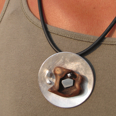 olivenholz und silberkörper auf scheibe poliert, 2006