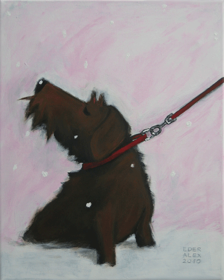 kurt, der weihnachtshund (motiv von henrike wilson) acryl auf leinen 50 x 40 cm, 2010