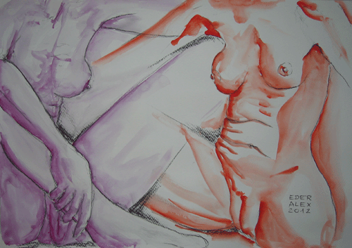 kohle und aquarell auf papier 42 x 60 cm, 2012