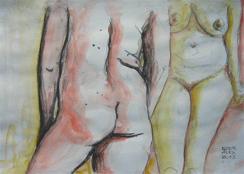 kohle und aquarell auf papier 42 x 60 cm, 2012