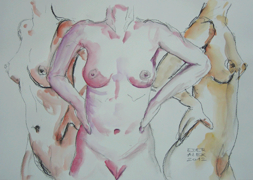 kohle und aquarell auf papier 42 x 60 cm, 2012