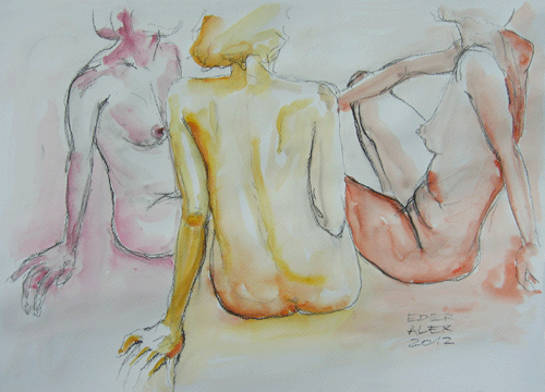 kohle und aquarell auf papier 42 x 60 cm, 2012