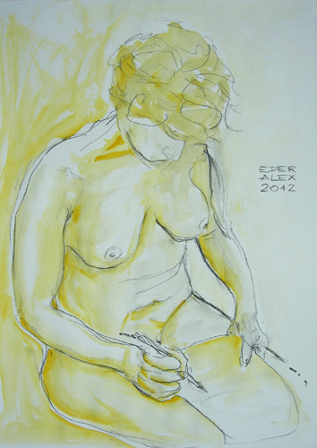 kohle und aquarell auf papier 60 x 42 cm, 2012