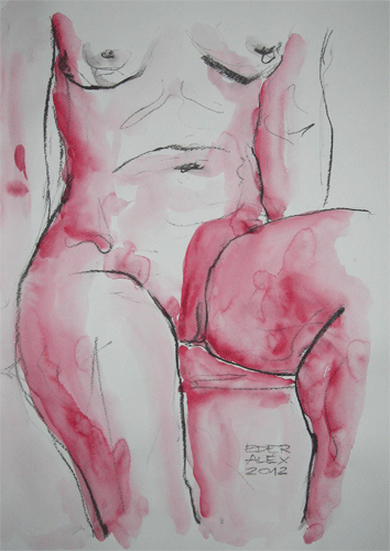 kohle und aquarell auf papier 60 x 42 cm, 2012