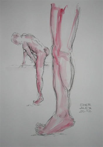 kohle und aquarell auf papier 60 x 42 cm, 2012
