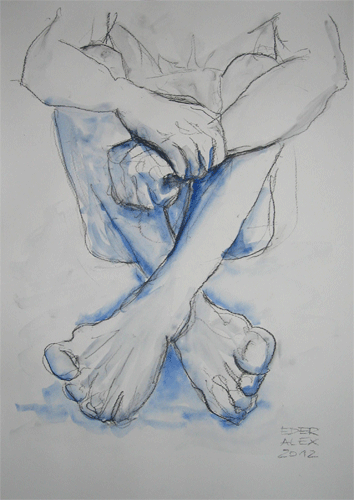 kohle und aquarell auf papier 60 x 42 cm, 2012