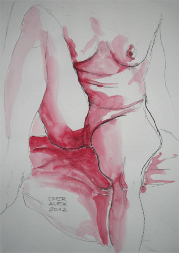 kohle und aquarell auf papier 60 x 42 cm, 2012