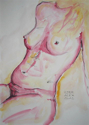 kohle und aquarell auf papier 60 x 42 cm, 2012