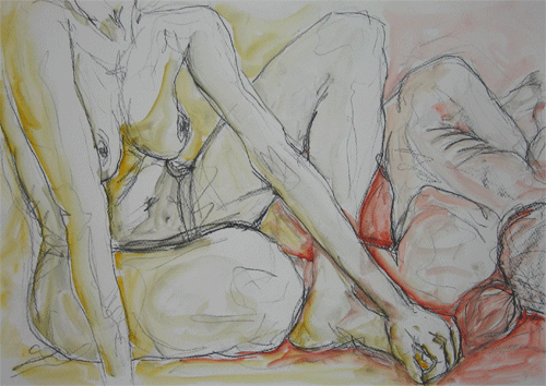kohle und aquarell auf papier 42 x 60 cm, 2013