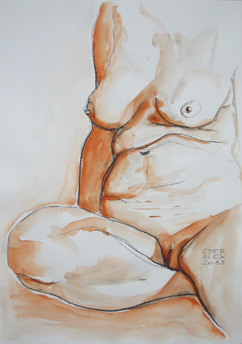 kohle und aquarell auf papier 60 x 42 cm, 2013