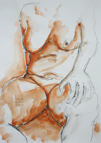 kohle und aquarell auf papier 60 x 42 cm, 2013