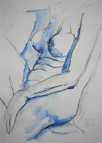 kohle und aquarell auf papier 60 x 42 cm, 2013