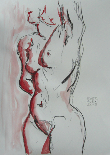 kohle und aquarell auf papier 60 x 42 cm, 2013