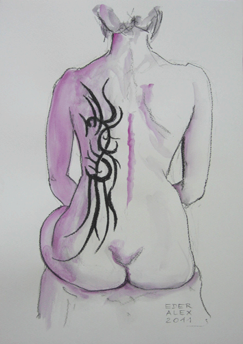 kohle und aquarell auf papier 60 x 42 cm, 2011