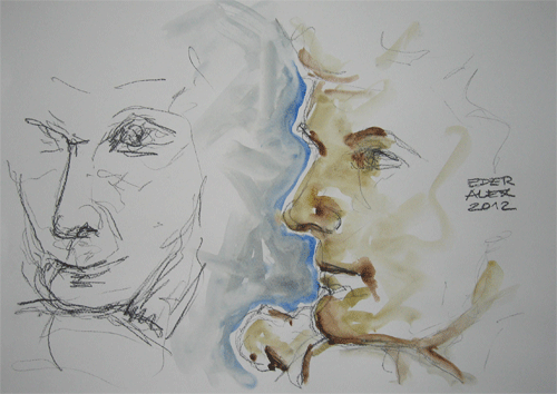 kohle und aquarell auf papier 42 x 60 cm, 2012