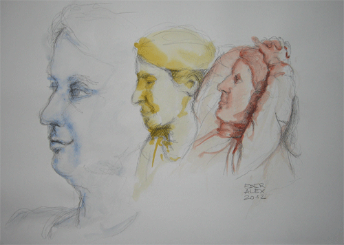 kohle und aquarell auf papier 42 x 60 cm, 2012
